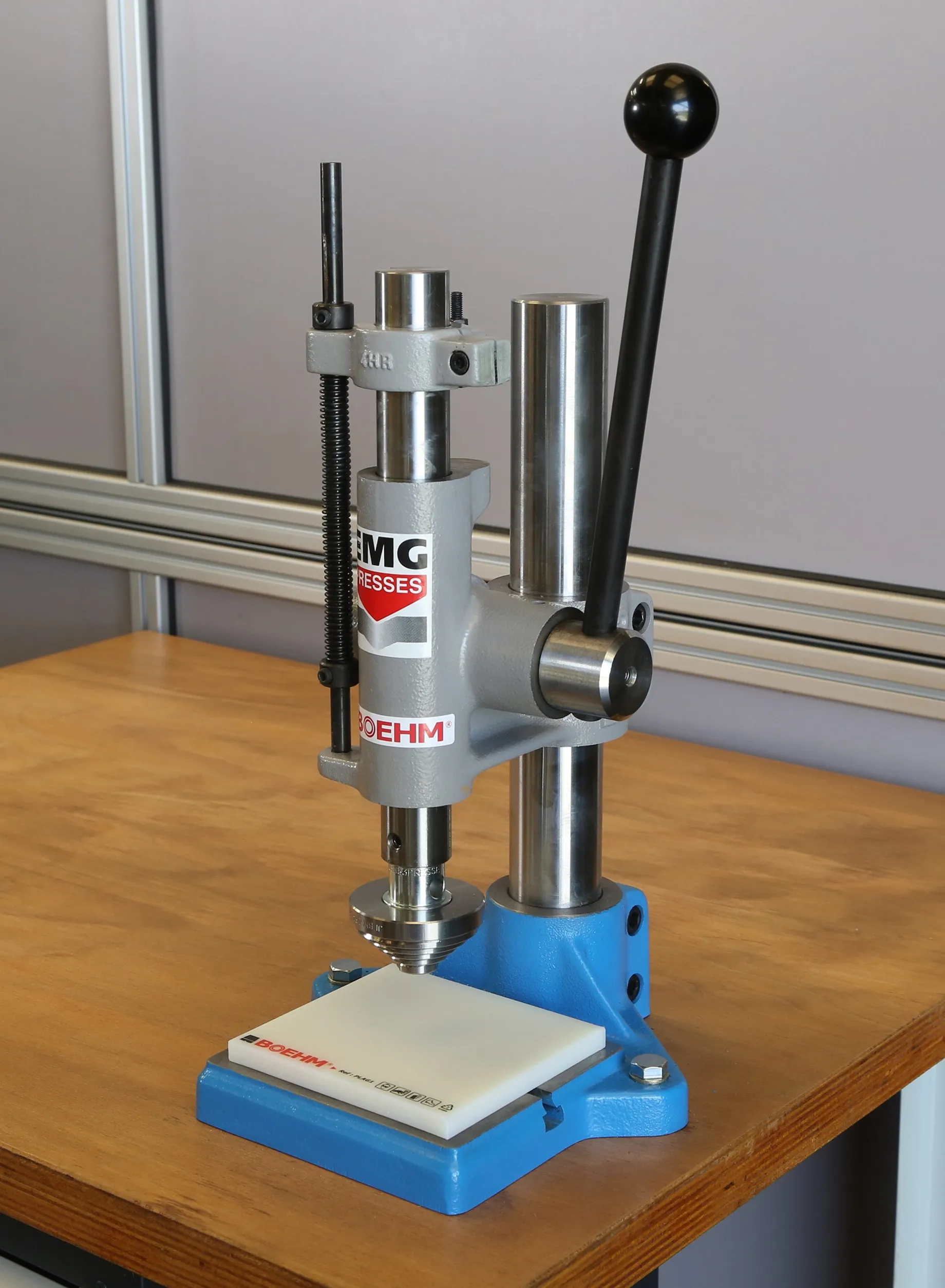 De kracht is lineair en constant over de hele slag, afhankelijk van de kracht die op de hefboom wordt uitgeoefend. Deze pers is robuust, nauwkeurig, flexibel en ergonomisch en wordt in Frankrijk gemaakt door EMG .
